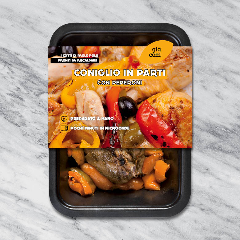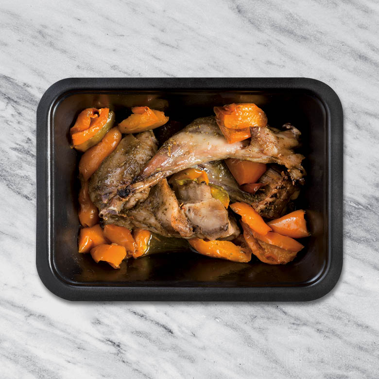 Coniglio in parti con peperoni