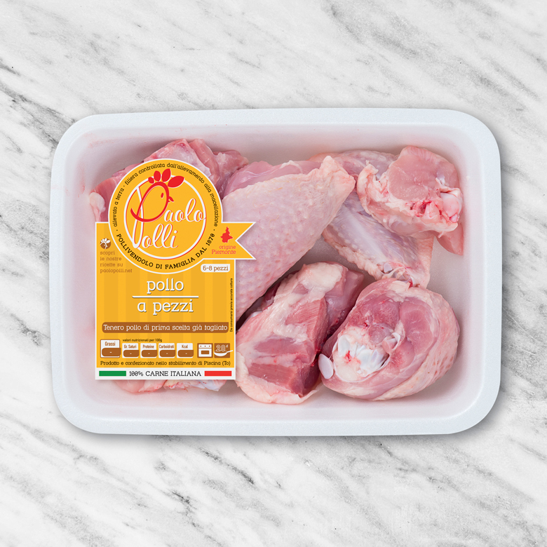 Tenero pollo piemontese di primissima scelta già tagliato e pronto da cuocere.